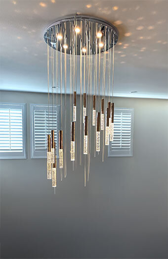 Professional installation of all lighting types including downlights, pendant lights, ceiling-mounted fixtures, wall lights, and LED strip lighting for new homes and renovations.